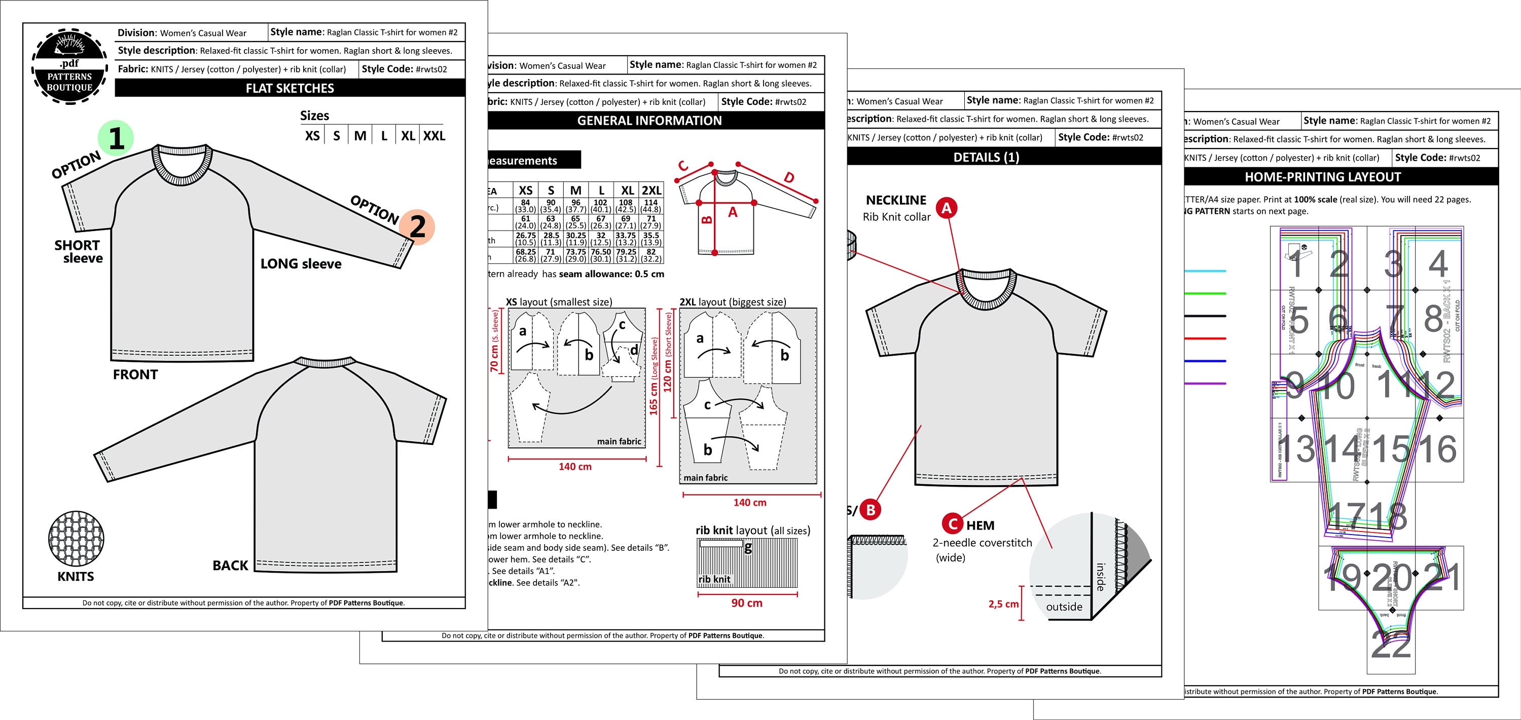 Raglan T Shirt Layered Long Sleeve Sewing Pattern For Women Xs Etsy Schweiz